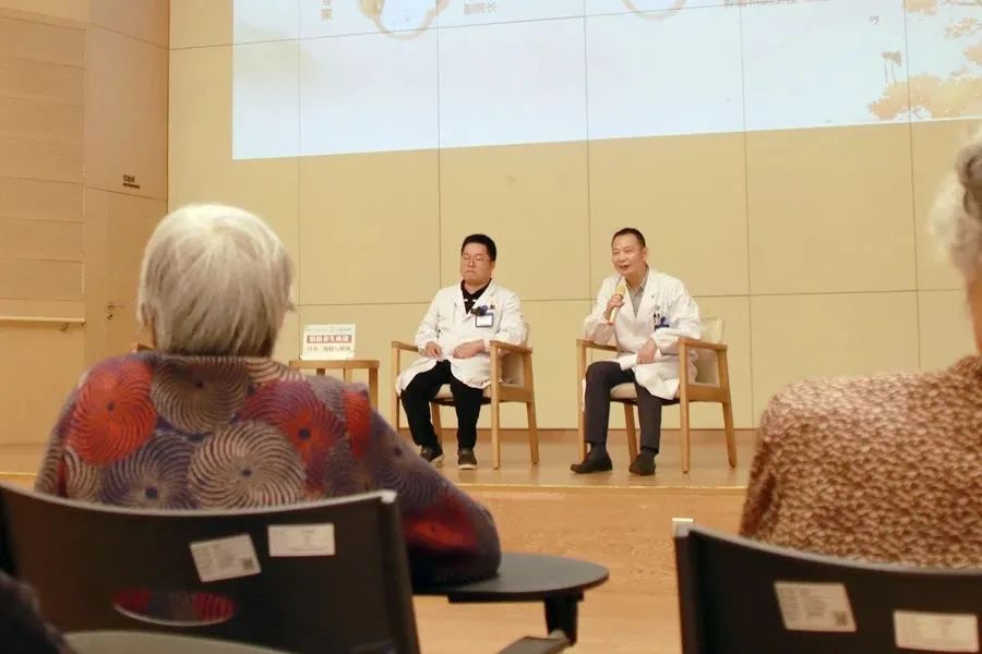 ▲ 讲座开始前,护士带领老人们打八段锦来“热身”
