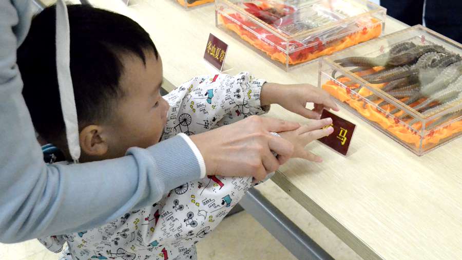 ▼ 现场展示三十余种药材,其中不乏珍稀药材,每味药材都配以详细说明,以供市民现场查阅。